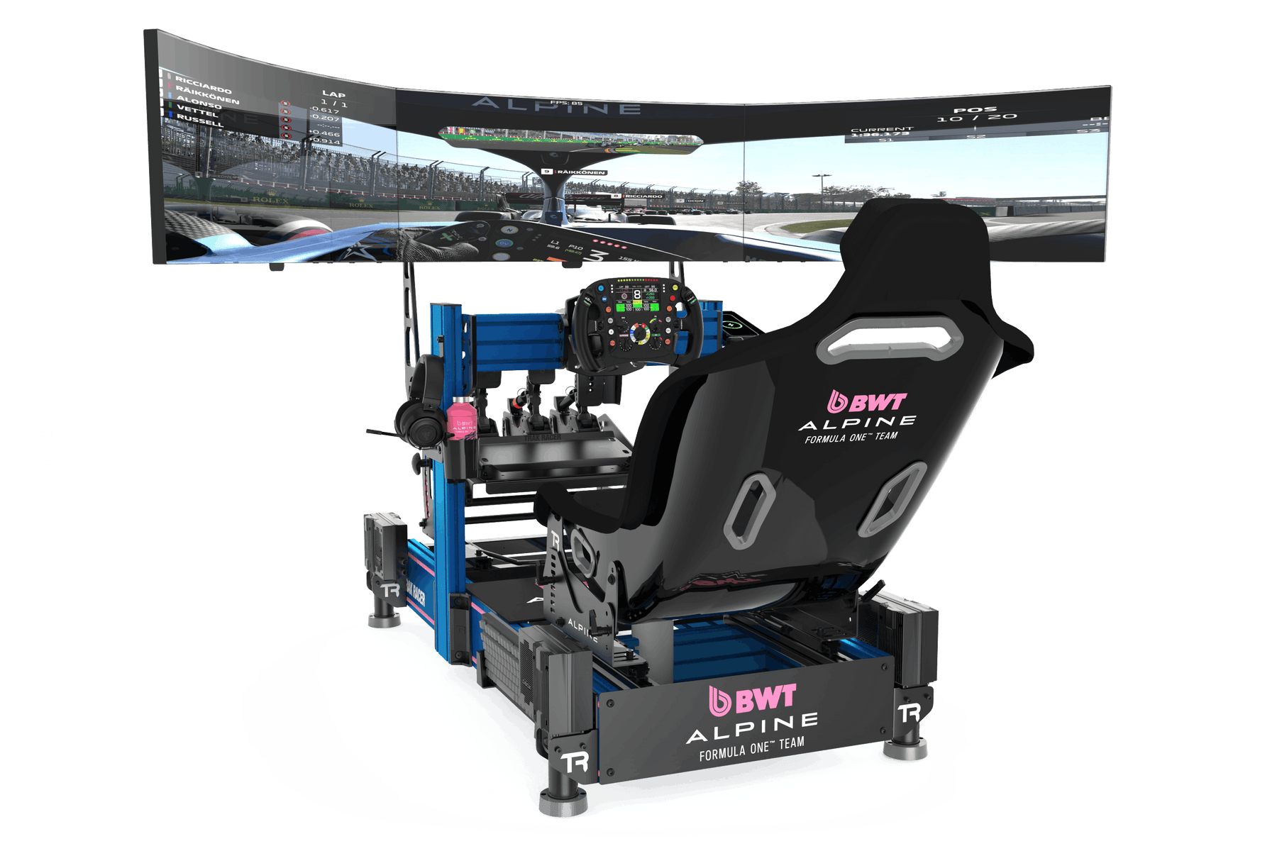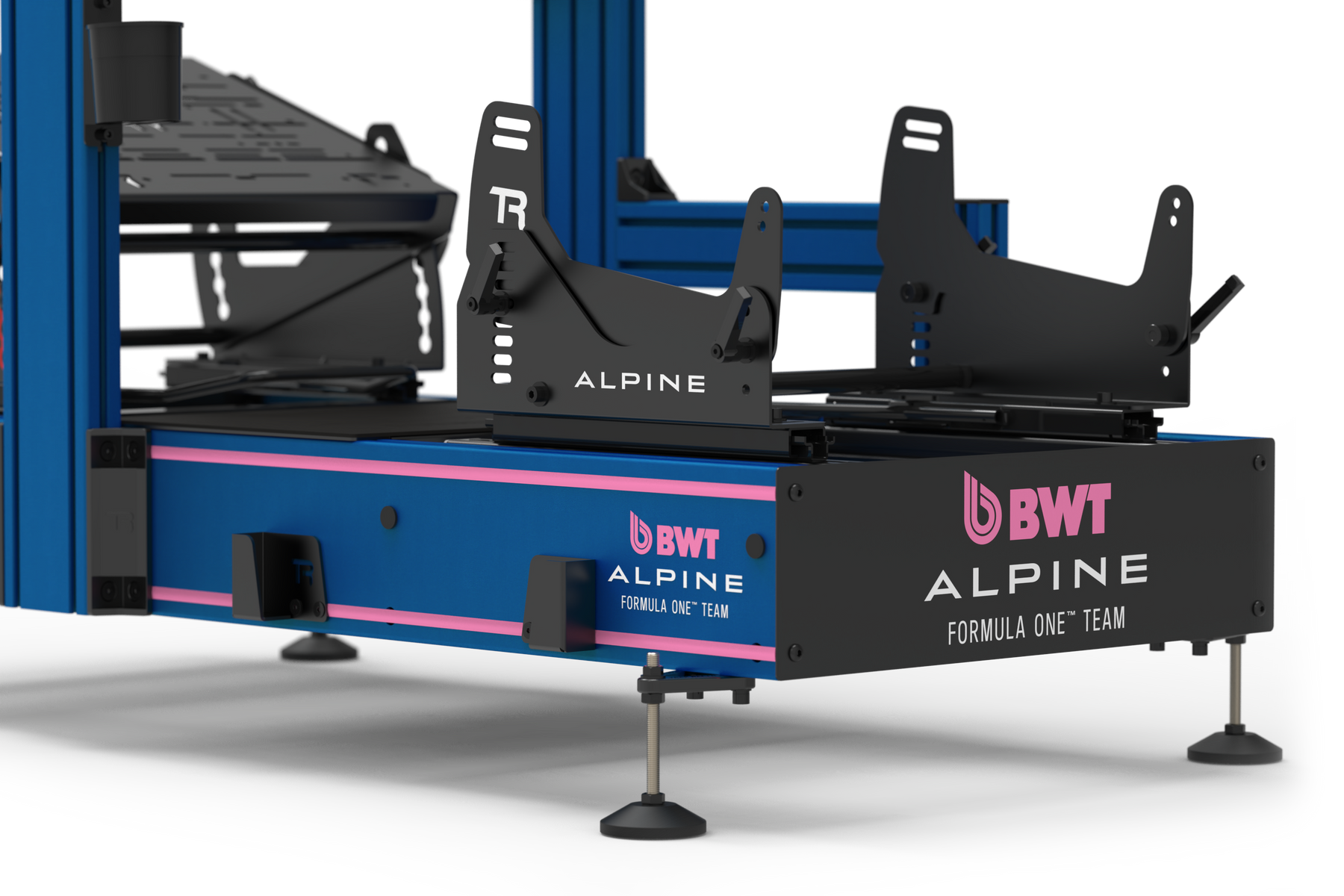 With a heavy-duty 160mm aluminum extrusion chassis finished in BWT Alpine Formula One™ Team Liquid Blue, the BWT Alpine Formula One™ Team TRA Hybrid Racing Simulator sets a new benchmark for tool-free adjustability and design.