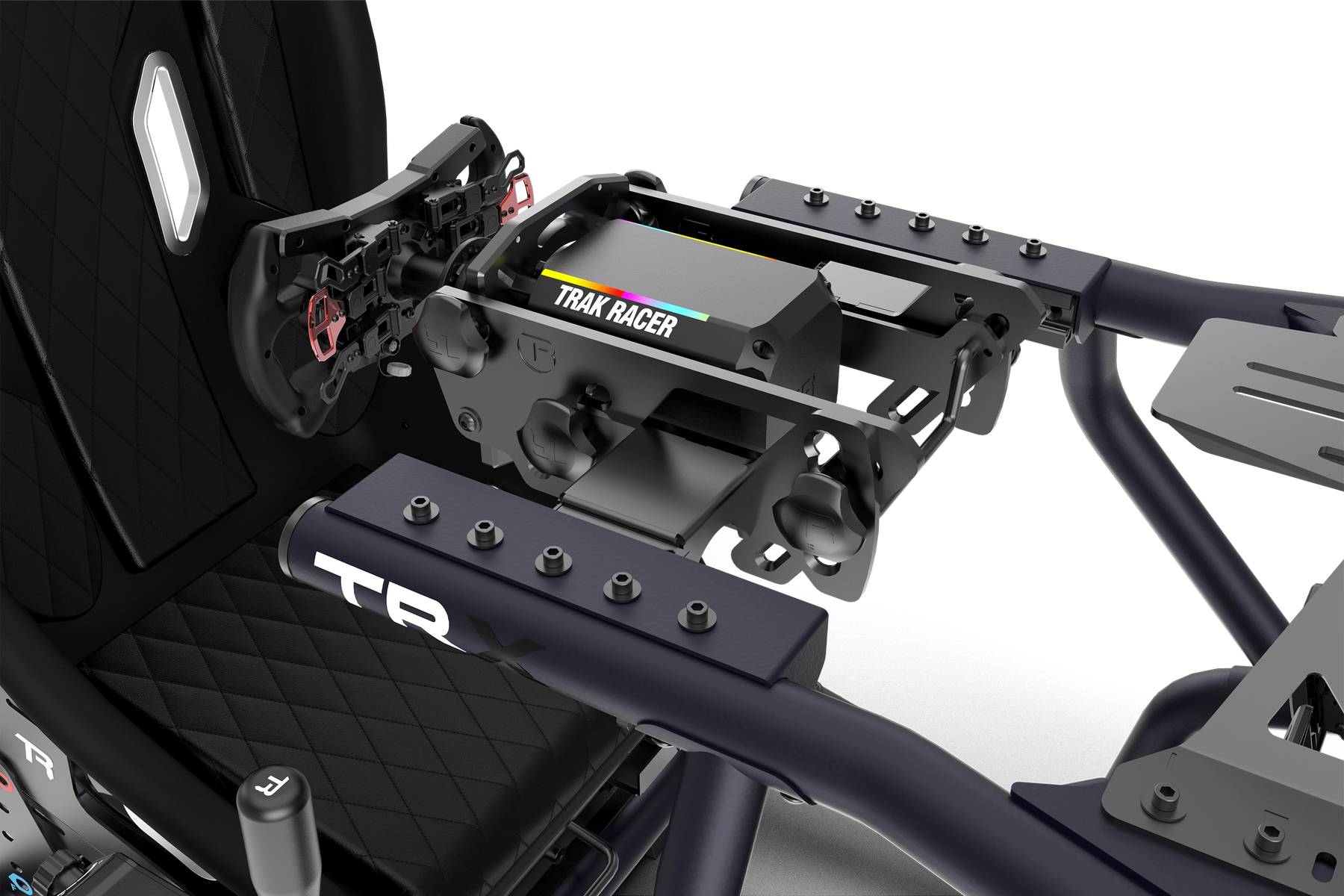 The intelligent Trak Racer TRX seat assembly; designed in conjunction with Formula Engineers, provides tool-free seat changes in under 10 seconds. Developed with feedback from ergonomic specialists to place the driver in the best possible position. For true immersion, the assembly includes space beneath the seat to mount a Trak Racer Haptic Bass Shaker.
