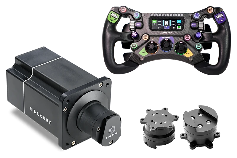 Take your sim racing performance to the next level with the Conspit 300GT Steering Wheel, paired with the Simucube 2 Pro Direct Drive Wheel Base and Simucube Quick Release. This premium bundle delivers unmatched realism, precision, and immersion — perfect for professional driver training, competitive eSports, or home racing simulators.