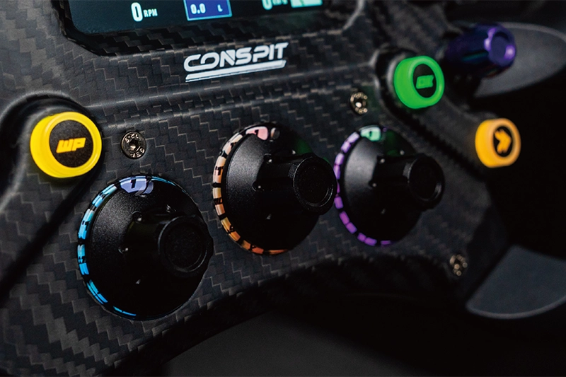 Advanced Controls: Features rotary encoders, configurable buttons, and dual clutch paddles for full in-race control.