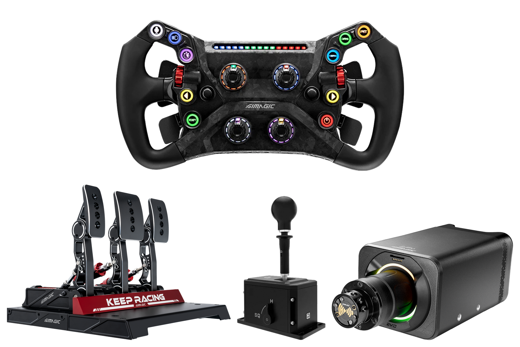 Simagic Alpha EVO Pro 18Nm Wheel Base, GT NEO Steering Wheel P1000 Pedal Set and Shifter Bundle