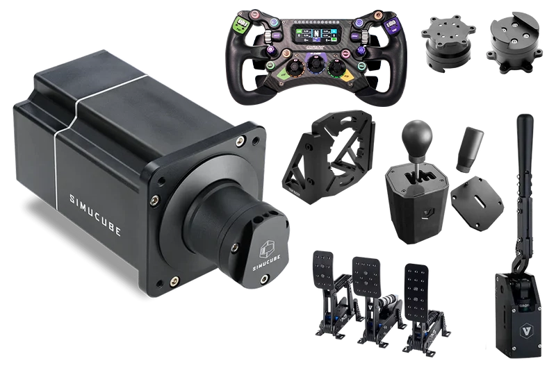 Upgrade your sim racing experience with this all-in-one bundle that combines top-tier components designed for precision, control, and immersive racing. Featuring the powerful Simucube 2 Pro R2 Wheelbase, the sleek Conspit 300GT Steering Wheel, and VNM's high-performance pedals, shifter, and handbrake, this setup is engineered for professional sim racers and enthusiasts alike.